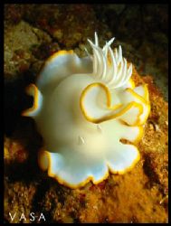 Ardeadoris Egretta - White Nudibranch (4 inches long), Photo taken from Blue Hole dive site, Lubang Island, Philippines. Canon Powershot A40 + Sea&Sea YS DX25 + 16mm Wide Angle (this guy is too big to fit my macro lense)