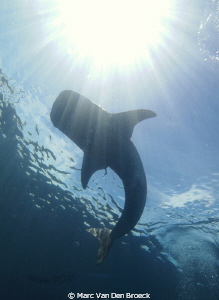 A Yellowfin Tuna was running from some false killer whales. The tuna was hiding under our arms and legs as the false killer whales swam circles around us.
