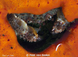 Crab inside, its sponge hide out, evaluating its next meal. Star walls, Atlantic Ocean, Hout Bay, South Africa