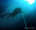 Diver decompressing on an ascent line, on one of the many wrecks in the South Florida area, called the Union Express. Photo taken with Olympus 7070 w/wide angle lens and Inon strobe