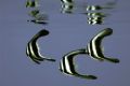 Aerial view from about 2000ft of the tide draining into the lagoon at Walvis bay, Namibia. The small dots are flamingos to give a bit of scale.
