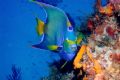 Juvenile Rock Beauty darting amongst the corals at Roatan