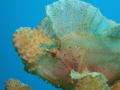 Leaf Scorpionfish blending perfectly with coral. Near Ulua Beach Maui, HI