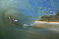 7am at Sandy Beach on the East side of Oahu, Hawaii. Canon camera, 18mm lens, Liquideye waterhousing. The girl on the beach was the only person in the water and she was catching some wild rides. In the image you can see her watching me get barreled!