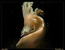 Little tiny nudibranch, no more than a couple of centimeters long. Taken in Thailand, in August 2007. Canon G7, built-in flash