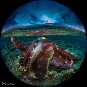 If you could coax a Cuttlefish up into the shallows of the reef top you could get this shot,. the setting are the same, lens. etc. This took two images and some layering though
