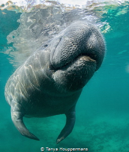 A manatee takes a break from napping to surface for a breath in Crystal River, Florida.