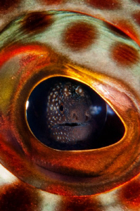 In the eye of the beholder: Ascension Island Grouper eyeballs a Fang Tooth Moray