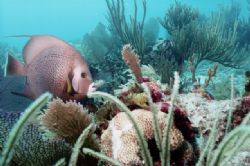 Nikonos V, 28mm, SB105 strobe. Taken on the Princess Brittany near Miami Beach. This Rock Beauty was in and out of the mast, playing with me and avoiding my lense at all cost!