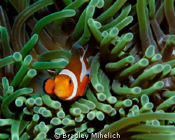 "hey you want a piece of me?" Clown fish protecting his terf. He even bit me.