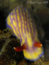 This charming little Red-Papulose Gymnodoris (Gymnodoris rubropapillosa) is one of the predator nudibranchs that hunts down and eats other nudibranchs. ..¸> <((((º> ·.¸.·´¯`·...¸> <((((º> ·..Canon G9 & Inon UCL-165 macro lens