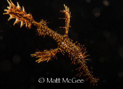 Ornate ghost pipefish in Lembeh Strait, North Sulawesi, Indonesia. Shot with Canon 5D mark 3, in Ikelite housing, with 2 Ikelite ds 125 strobes, with a snoot. Underwater photography by Matt McGee. More images at click here