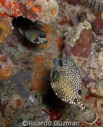 Up Close and Personal: Curious trunkfish off the western coast of Puerto Rico (Aguadilla). Taken on a night dive with my lamp serving as strobe.