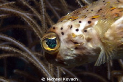 Spotted Burrfish hiding and watching at the Ledge of Turtles off the beach in Fort Lauderdale.