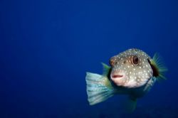 Smile for the camera. A rough winter dive in Hawaii today on the North Shore of Oahu, however still managed to get a shot off or two. 100mm macro.