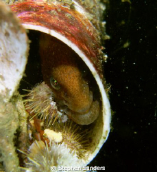 the subject of the image is a moon snail. the picture was taken by a sea & sea dx1200 in puget sound, Washington