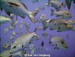 The famous school of Bohar snappers at Ras Mohammed. I succeeded to get right in the middle of this humongous group.