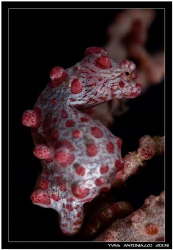 My first entry of a pigmy sea horse and it was so pregnant that I don't have enough DOF to have it all in focus Fuji S5/60mm