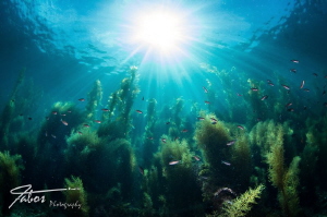 Michael FabosSunny kelp top at Avalon Dive Park, Catalina Island, California