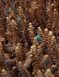it was growing out of the top of a mast of a sunken ship In Chuuk, micronesia. Te ship was at 30m but upright. the top of the mast at about 8m. I could therefore get this great back light with a soft flash... not bad for a point and shoot camera!Casi