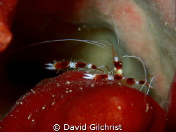 Banded Coral Shrimp on a Sponge in Roatan, Honduras