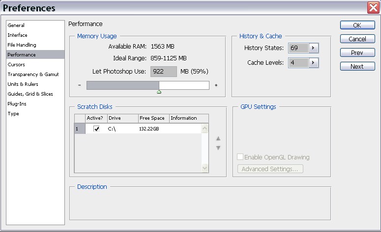 You can check how efficiently Photoshop is allocating memory whilst editing by clicking