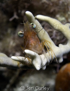 Shrimp on coral. Taken with an Olympus Evolt e-300 and Ikelite DS125 on a night dive.
