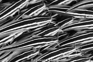 I have always been intrigued by the herds of catfish that occupy the waters of Indonesia, always staying together as a team. I decided a black and white would capture the views eye in a dramatic image I have applied a brightness and contrast edit to.
