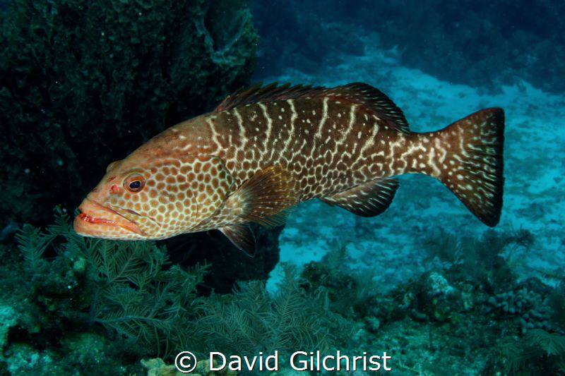 A Tiger Grouper hanging out in the waters of the Roatan M...