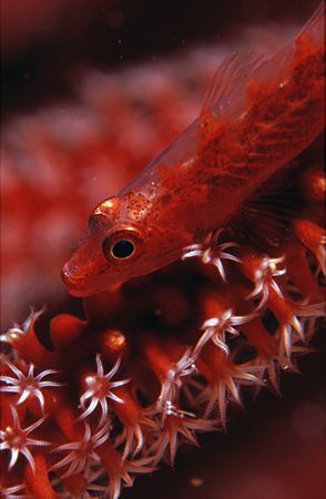 Gobie on Red Whip Coral, Mabul Island Sabah, Borneo. Niko...