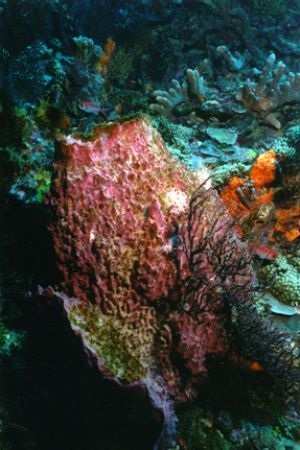 Barrel sponge. Taken 05-05, St. Lucia. Nikonos V, 20mm le...