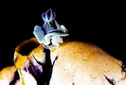 Slippery Slope. Looks like this shrimps is holding on for fear of slipping off.