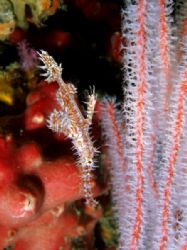 Ornate ghost pipefish with soft coral, quite a good disguise really...