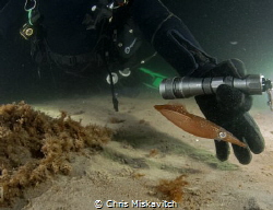 Night Dive off the coast of New England...Divers shine their lights into the darkness and if you are still and have patience new friends often come to check you out.