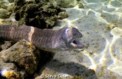 Moray Eel showing he’s not to fond of photographers. Image taken on Kona, Hawaii in Kahaluu Bay. Canon G7X3
