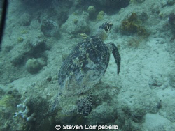 this is a endanger species of turtle. his name is tripod. he lost one of his front fins but nobody knows how it happened
