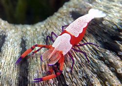 Emperor shrimp - Canon 300D. There were two running around the cucumber but couldn't both of them in frame at the same time so decided to focus on the one