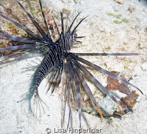 All fanned out & hovering in the water, a Lionfish lurks.