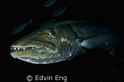 Fear Factor - Face to Face with a 2m long Great Barracuda. Taken in Tulamben with Canon G9 & Inon Z240 strobe.