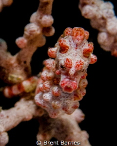 A pygmy seahorse head on in Lembeh Strait, Indonesia