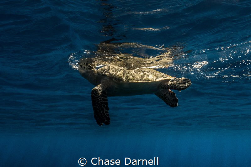 A Hawksbill Turtle starts a breath up to...