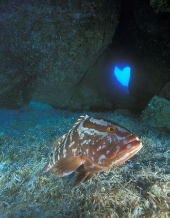 Grouper in the Tunnel of Love (Nikon F4, 18mm/3.5, Aquati...
