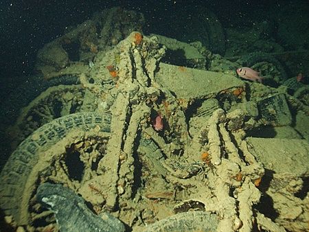 Motorbikes in one of the Thistlegorm's cargo holds, taken...