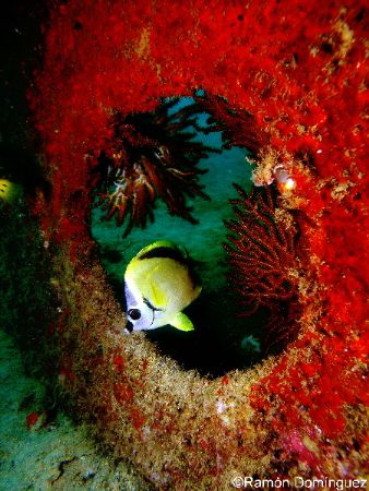 Butterfly fish framed by the Salvatierra shipwreck near L... by Ramón Domínguez