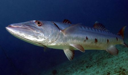 Close focus wide-angle of barracuda. Just disturbed it at...