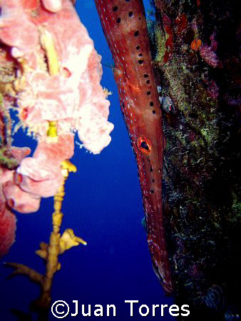 Close up of a Trumpet Fish in Salt Piers, Bonaire.