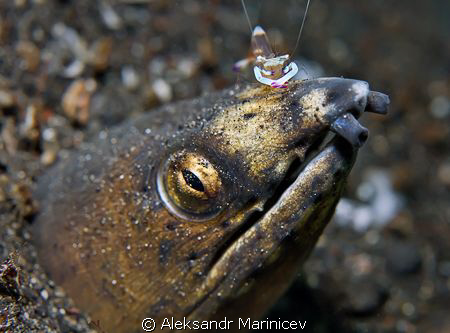 Snake eel with partner shrimp, Lembeh