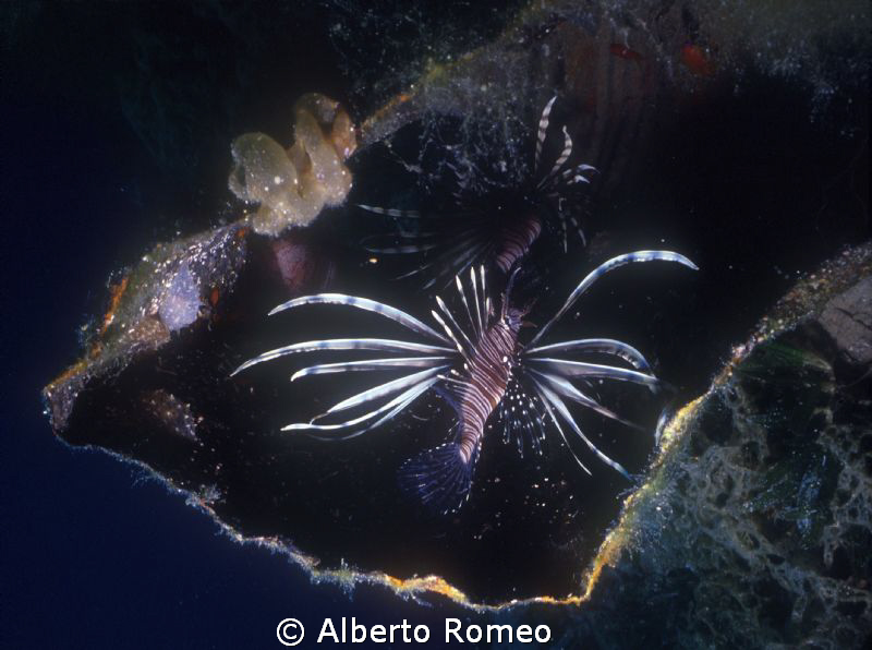 "Pterois volitans" in the hatchway of the wreck of Ced...